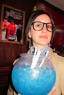 Anyways, we moved on to Wandos - notorious for their fish bowl drinks. For $20, you get a large fishbowl with a bunch of straws and you can share the H1N1 virus with all of your friends. The place was packed. En route, we passed hundreds of drunks, one who chose to canvas in a drunken stupor, piping, "Vote for Joan Kloppenburg on Tuesday!" Look - I am glad these drunks are still doing some good. The line was long and some kids let us right in the front (I told them I was Mrs. Wando....)