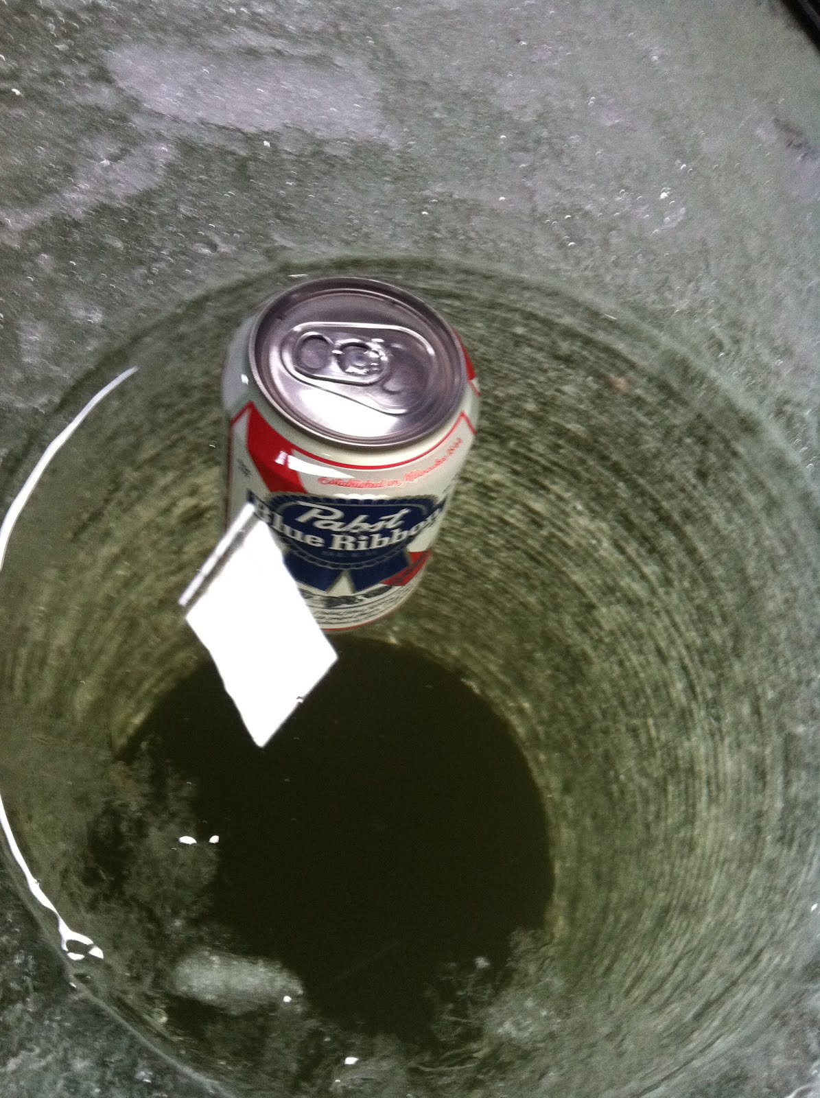 After a while, it was time to break the seal. [Oh - did I mention we were ice fishing, too? Oops]. One of the gals didn't want to use nature's restroom, so a few of us girls piled into a car and went to the town bar. Now, the town bar was full at 2:20 PM. And let me have you know that everyone turned and looked at us when we came in. They wanted to see if they knew who we were. Maybe it was their cousin's girlfriend or something - I don't know. My PBR in a glass was $.75! Yes - that is correct! That is seventy-five cents, ladies and gentleman! After a few rounds [roughly costing $5 for four women/round,] we went back to the shanty.
